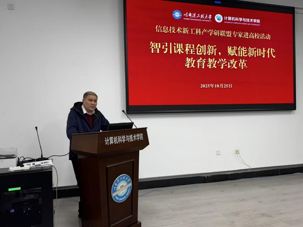 2025年10月25日,由信息技术新工科产学研联盟专家进高校工作委员会、联盟实践教学工作委员会,联合中国计算机学会(CCF)教育专业委员会主办的“联盟专家进高校”第83站在哈尔滨工程大学计算机科学与技术学院成功举办。本次活动以“智引课程创新,赋能新时代教育教学改革”为核心议题,吸引了校内师生约70余人参与,共同探讨“101计划”课程建设及资源利用以及大模型赋能专业建设和教学改革。