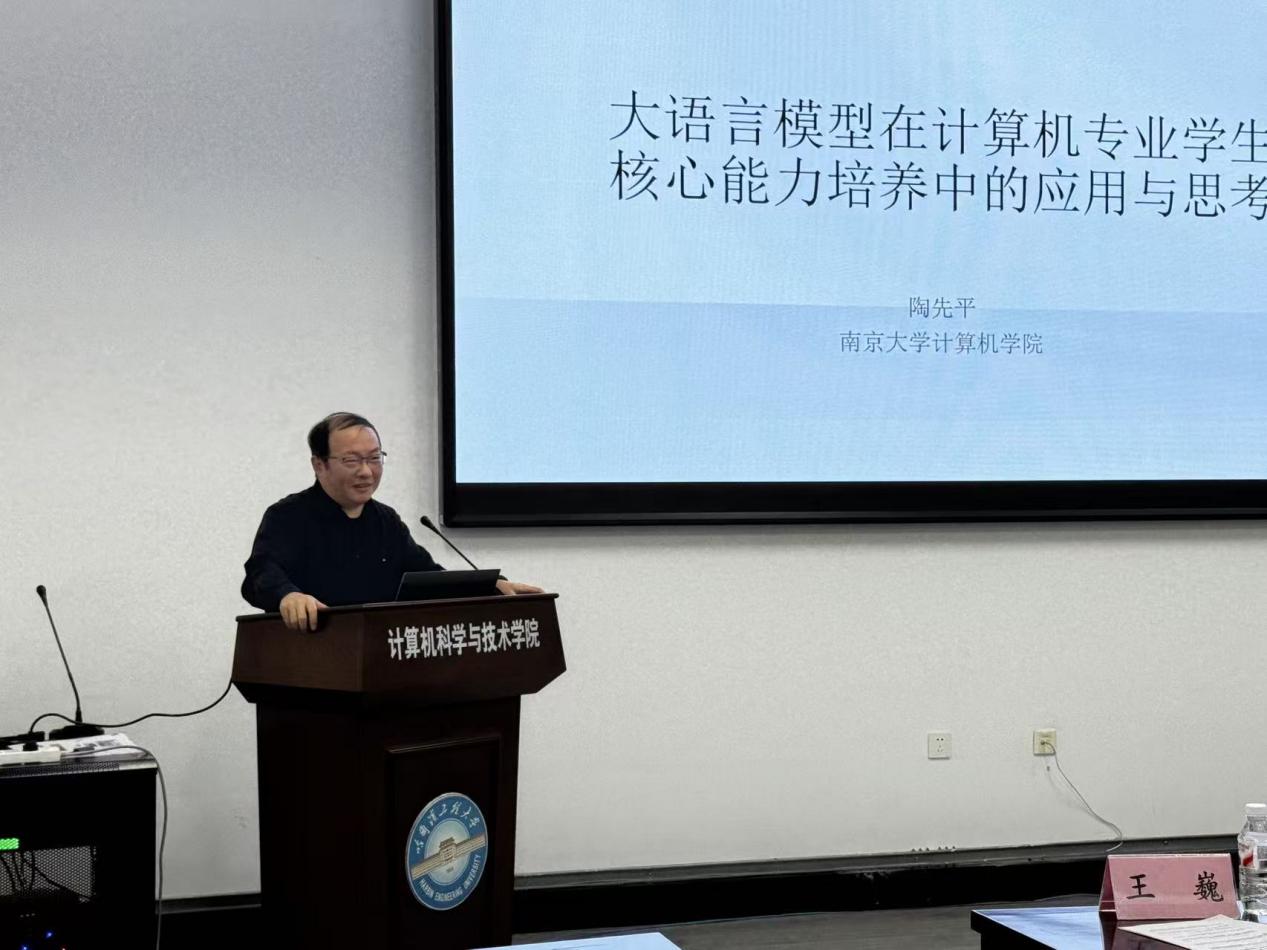陶先平教授聚焦《大语言模型在计算机专业学生核心能力培养中的应用与思考》,围绕大语言模型的本质能力。学生学习能力、工程能力、创新能力三个核心能力培养中,如何彰显和规避的大模型应用方式,介绍一些思考和应用经验。